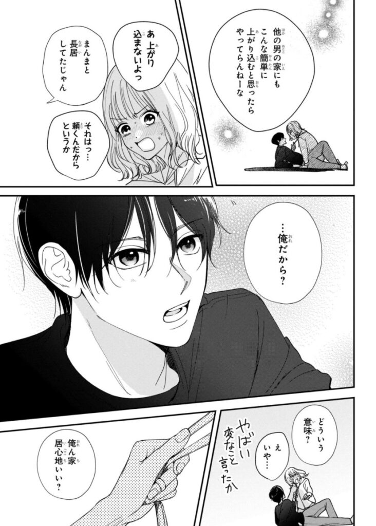 さらに頼に突然耳たぶを触られ、急に頼の部屋にいることを意識し始めます。